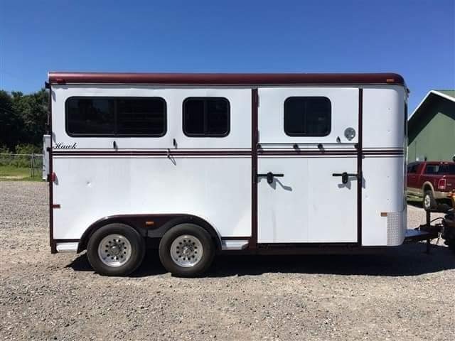 Very nice and hard to find 2007 Hawk 2 horse bumper pull trailer with side ramp and dressing room! Aluminum with galvanized steel frame and fiberglass top.