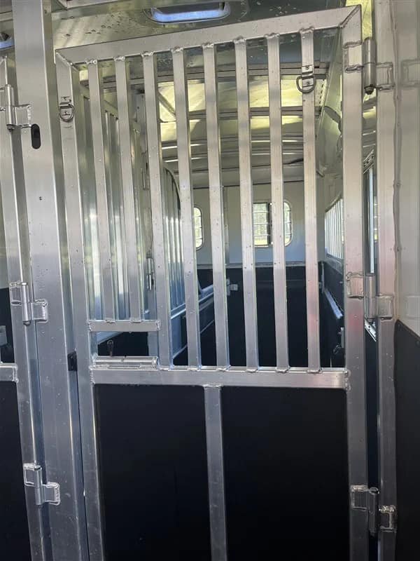 • Escape door front box stall (7.5’ long) stud gate Quiet ride dividers
