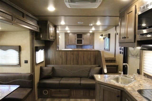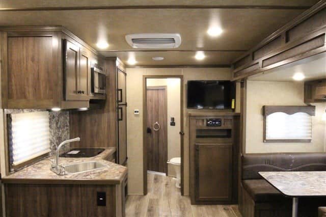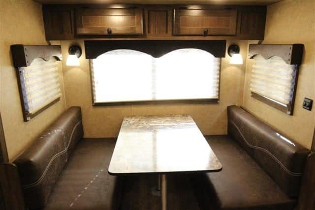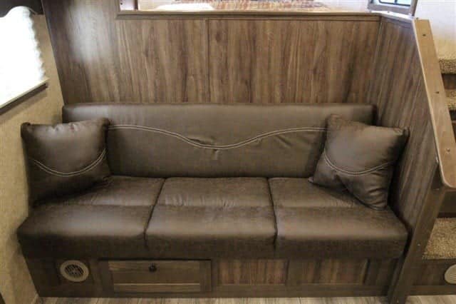 • Settle in at the dinette for dinner or drinks; there is even extra seating on the jack-knife couch!