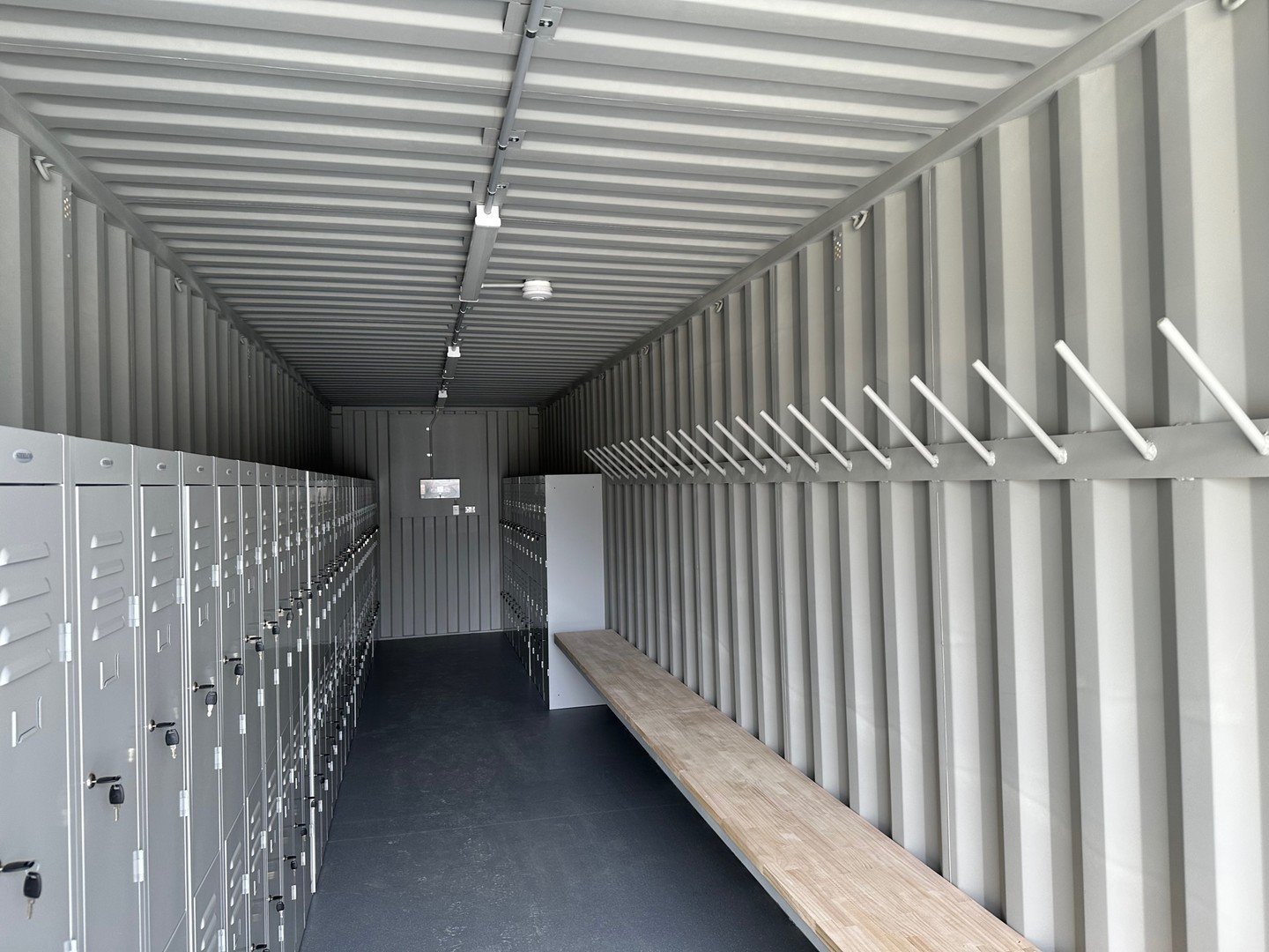 Introducing our Newly Converted 40ft High Cube Shipping Containers Locker Rooms and Storage Areas!