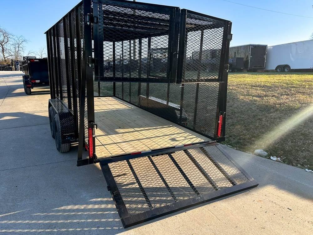- Reinforced loading gate with an upper barn door: The gate on the trailer is reinforced with 5 supports in addition to the outside 2 supports. This is more than most trailer manufacturers will add and it ensures the gate will not bend over time from daily loading. The gate also will fold inside the trailer so that you can use the full length of the trailer or for transport purposes.