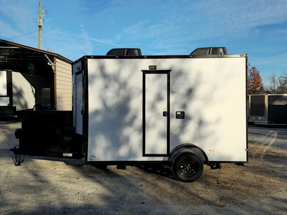 - Sleek Exterior Design: White trailer with striking blackout trim offers a clean, modern aesthetic.
