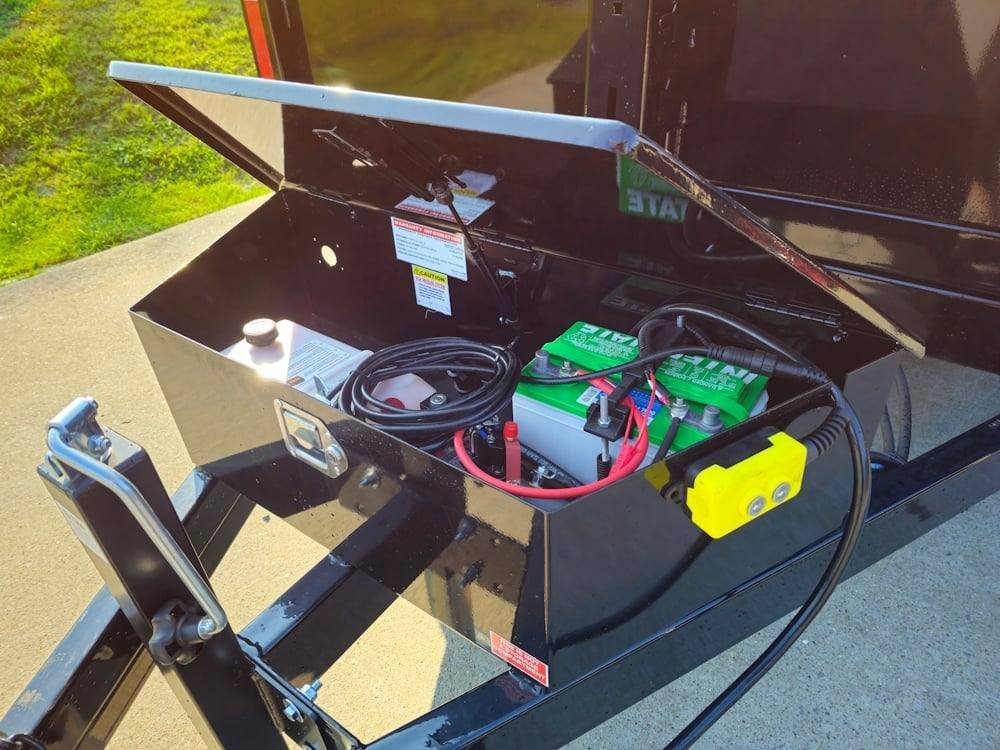 - The paint finish is a high gloss black powder coat, giving the trailer a protective and sleek appearance.