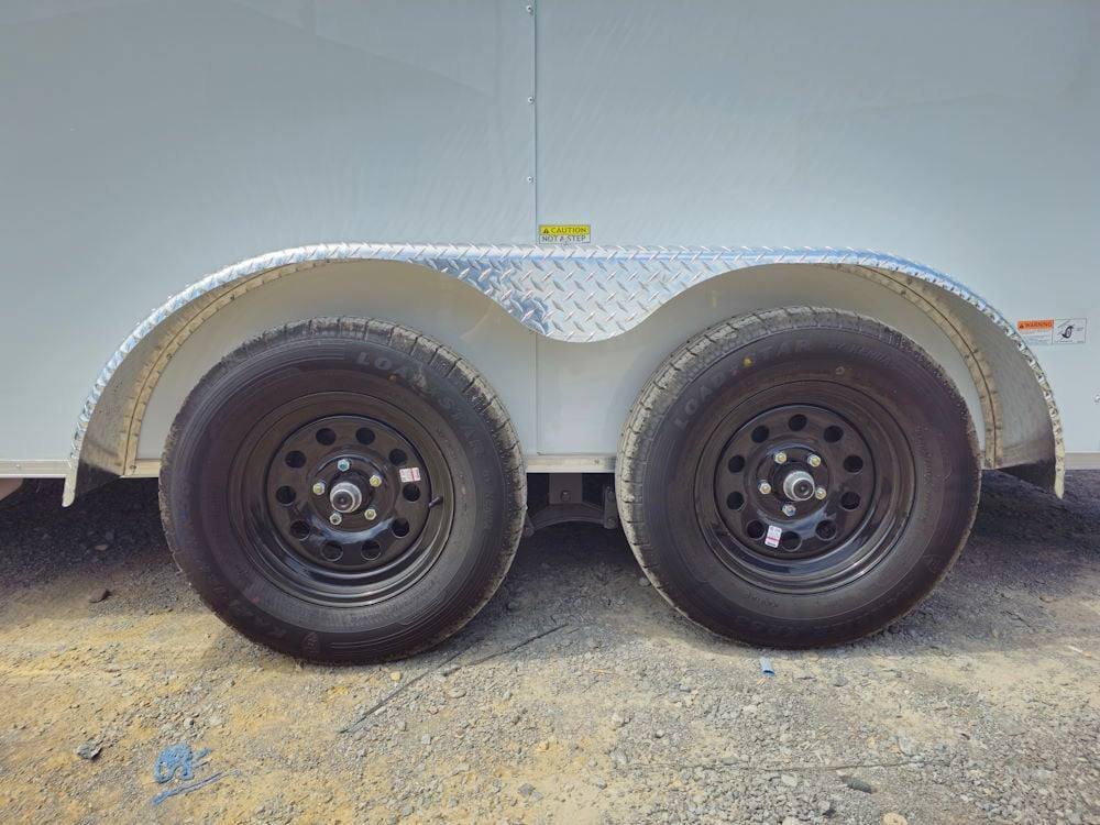 • Durable Wheels and Tires: The trailer rides on steel wheels with radial tires, offering durability and a smooth, reliable ride to your destinations.