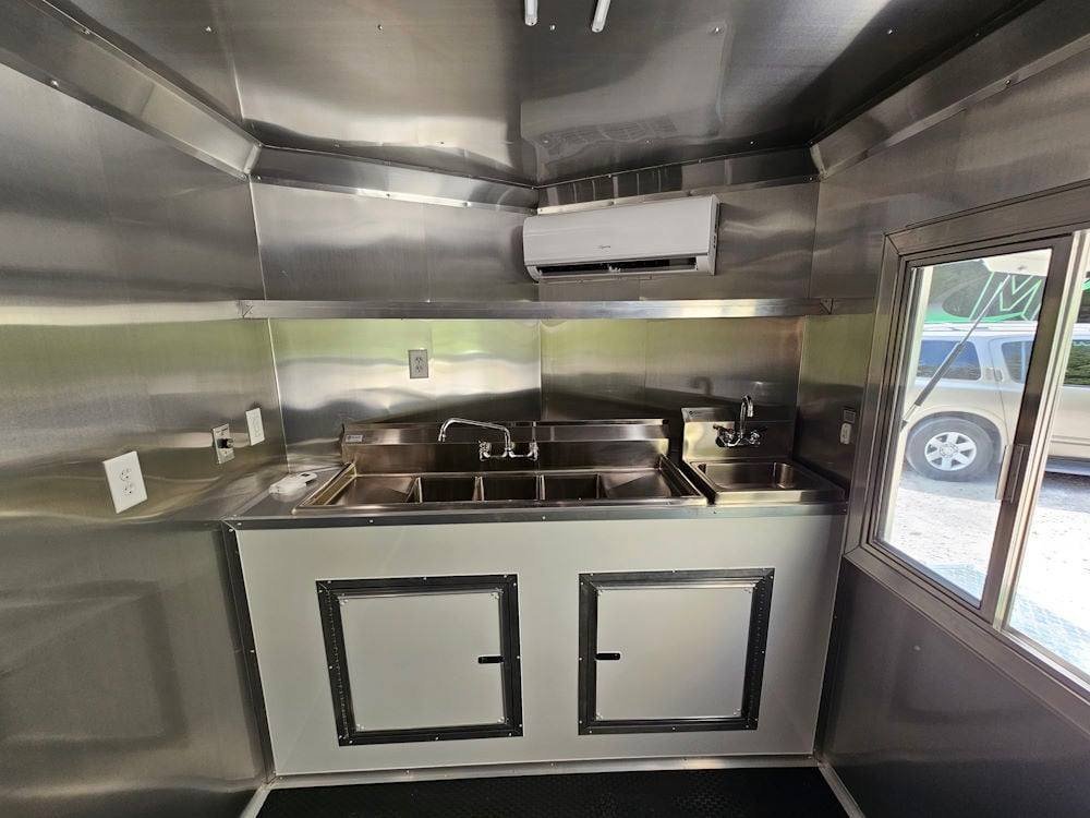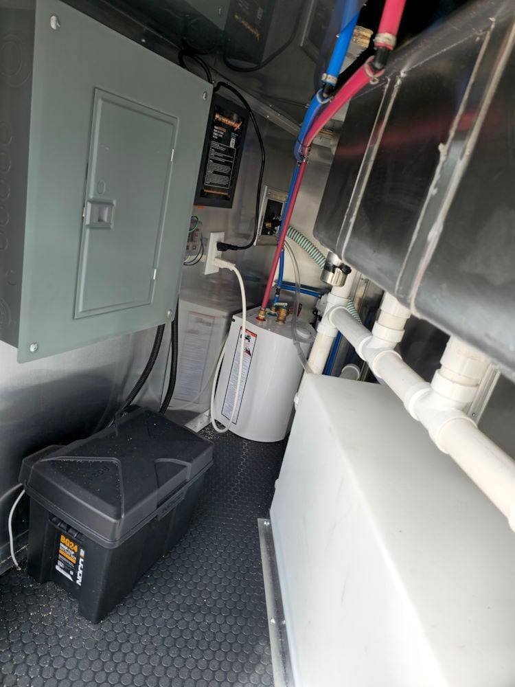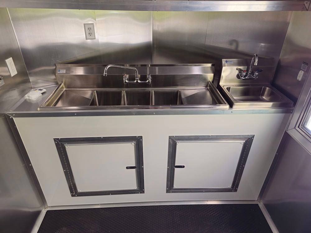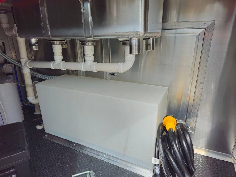 • Complete Water System: The sink package includes a 30-gallon fresh water tank and a 50-gallon waste tank, along with a 6-gallon water heater and a city water fill box, ensuring reliable water management for your operations.