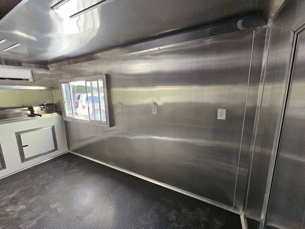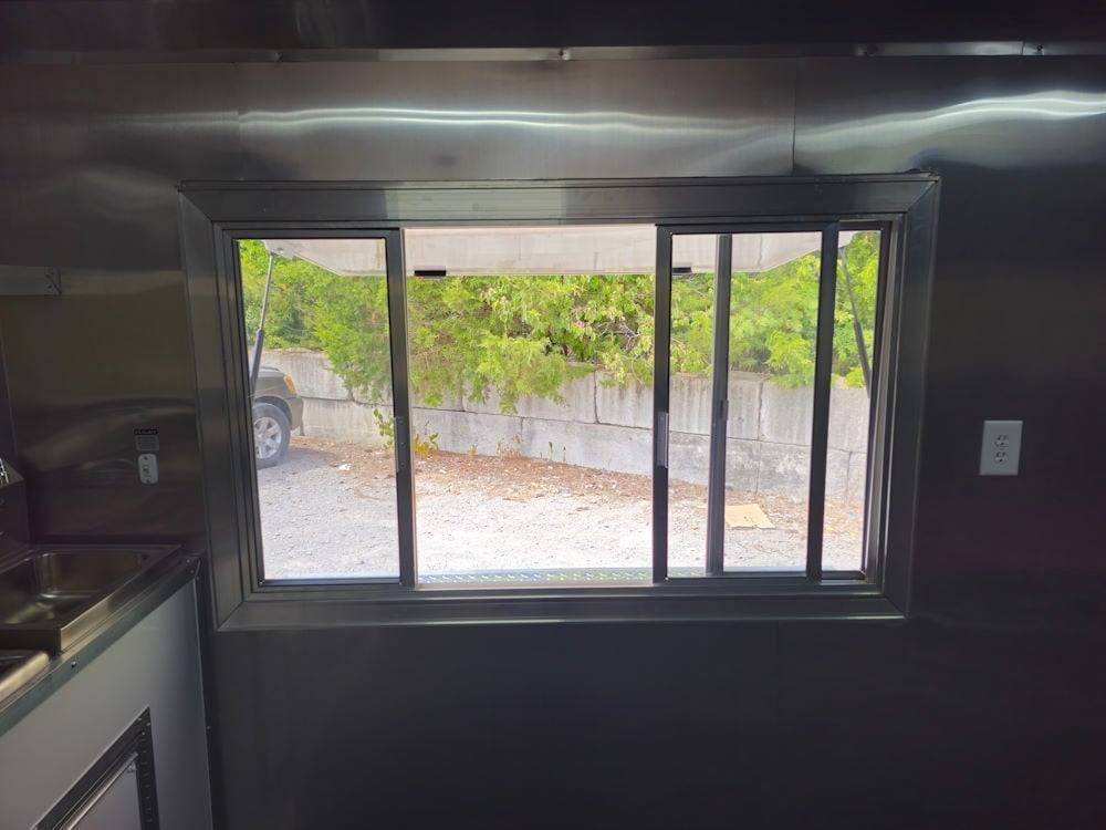 • Convenient Service Window: The 5′ concession window with glass and screens, coupled with a flip-up counter outside, creates an accessible and efficient service area for interacting with customers.