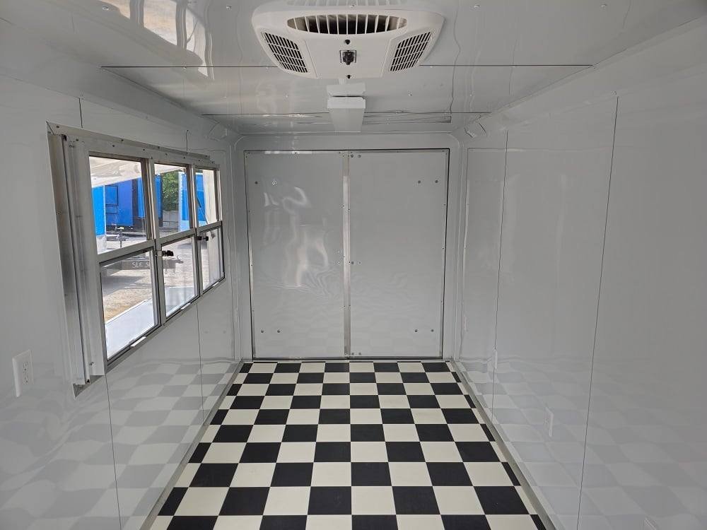 - White aluminum finish walls and ceiling