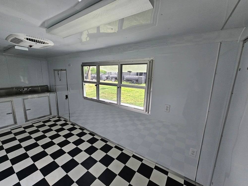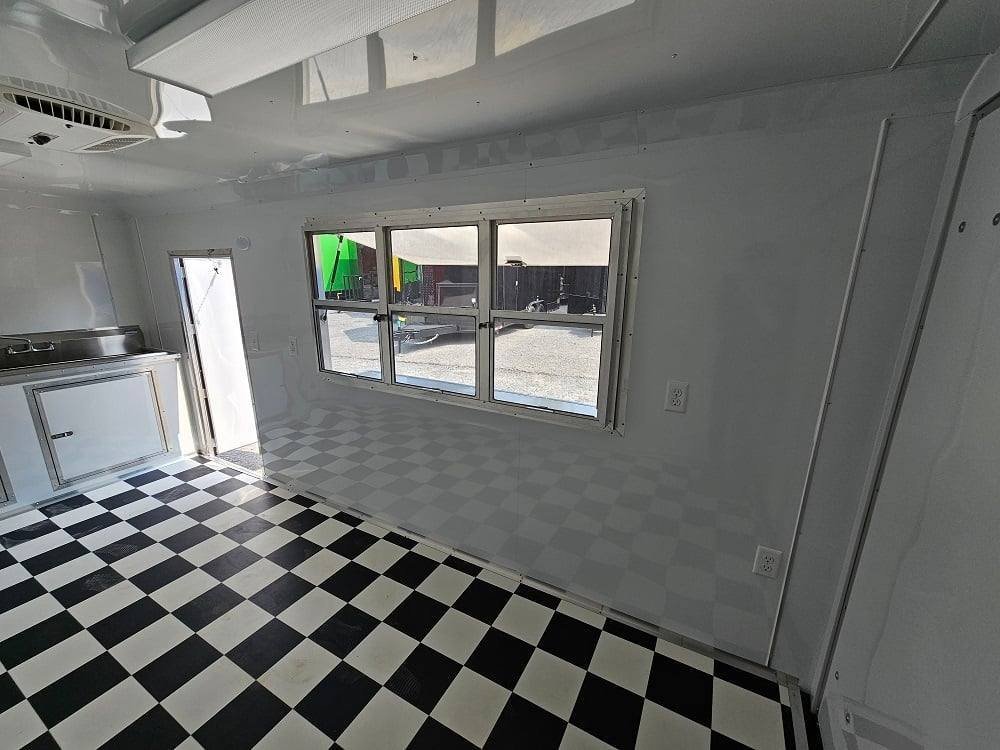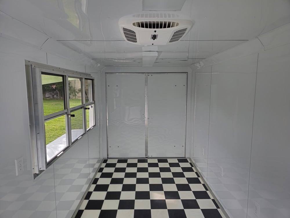 - 6′ Concession window with glass and screens with flip-up counter outside