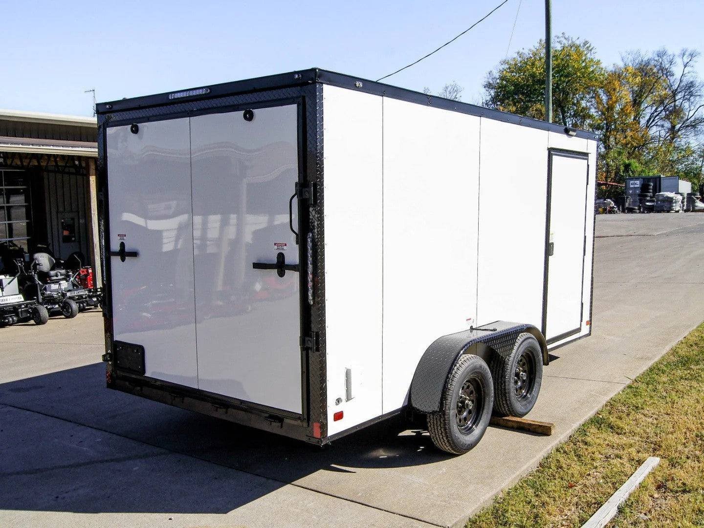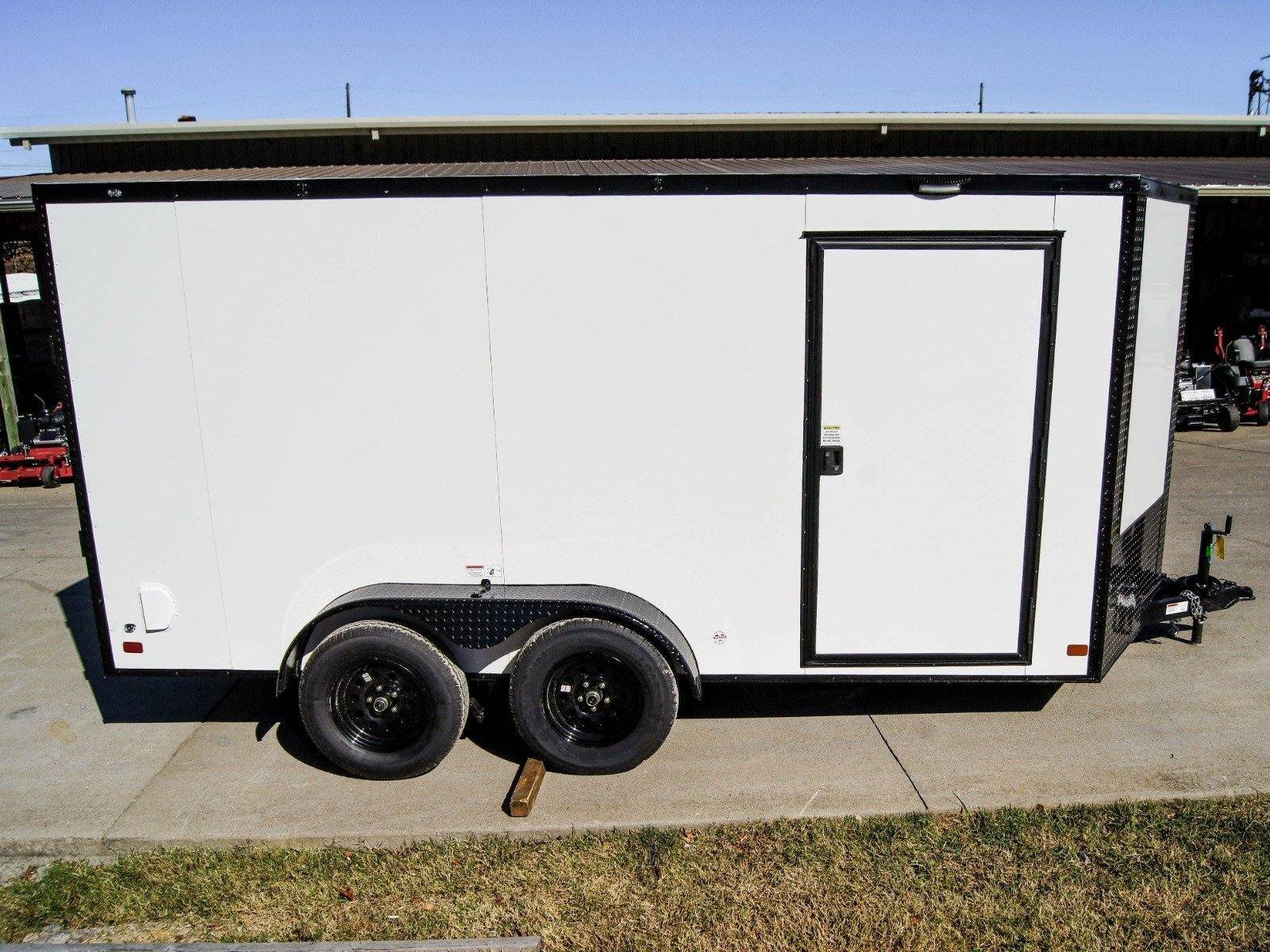 7×14 Tandem Enclosed Trailer White V-Nose Blackout Package (2) 3,500lb Axles