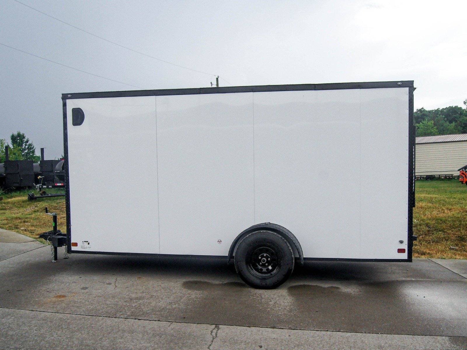 7×14 Enclosed Trailer White V-Nose Blackout Package 3,500lb Axle