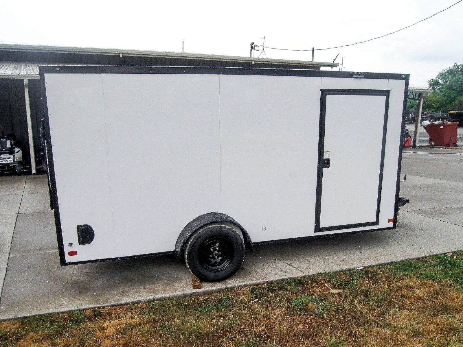 7×14 Enclosed Trailer White V-Nose Blackout Package 3,500lb Axle Storage