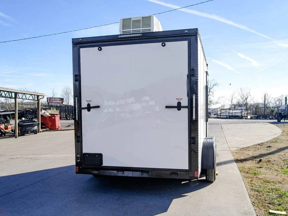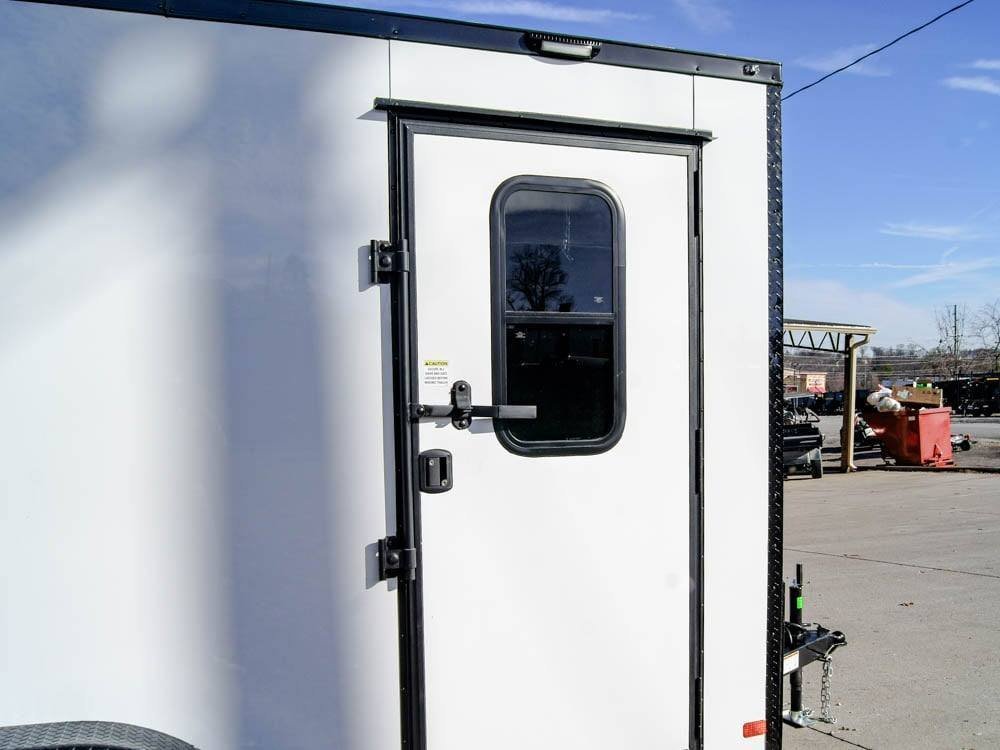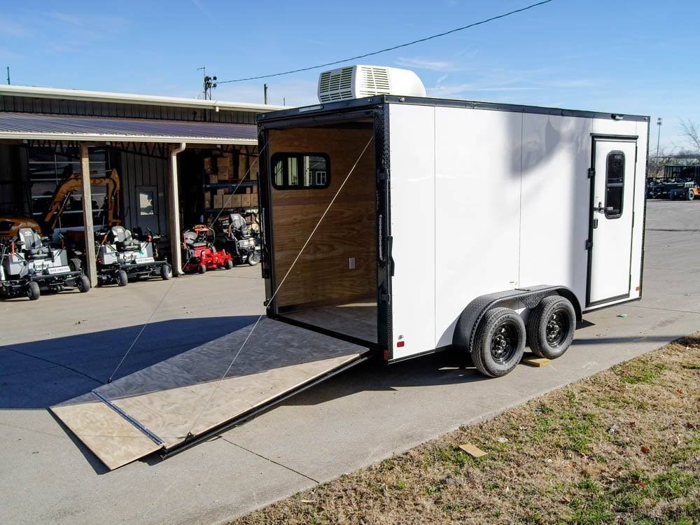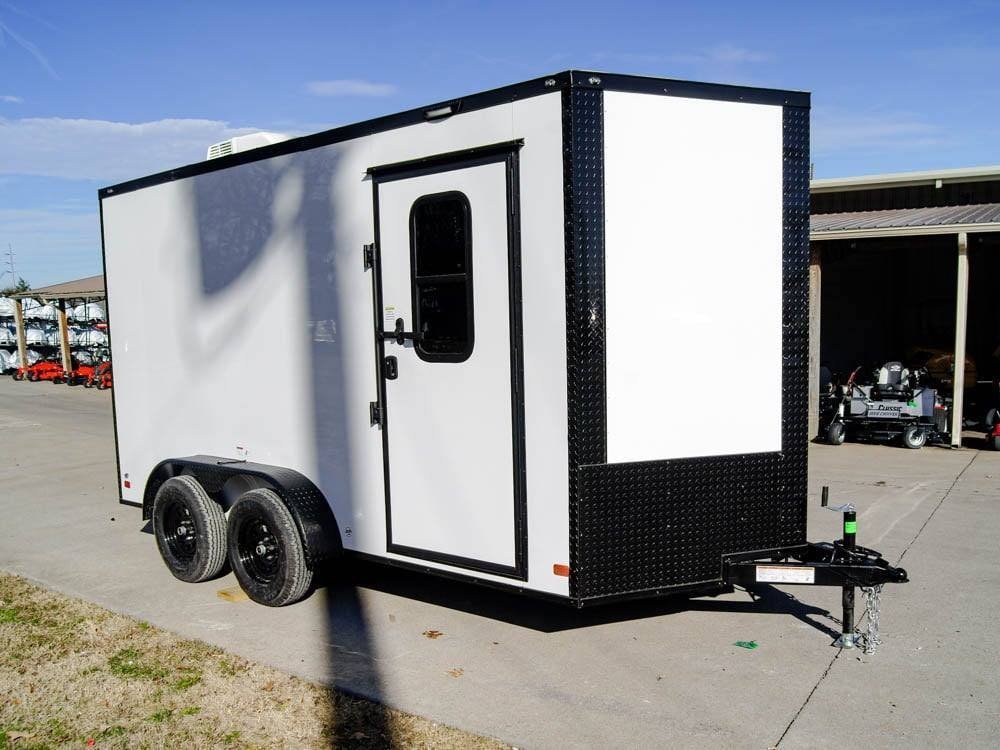 7×14 White V-Nose Enclosed Trailer (2) 3,500lb Axles Windows Elect & Blkout Pkg