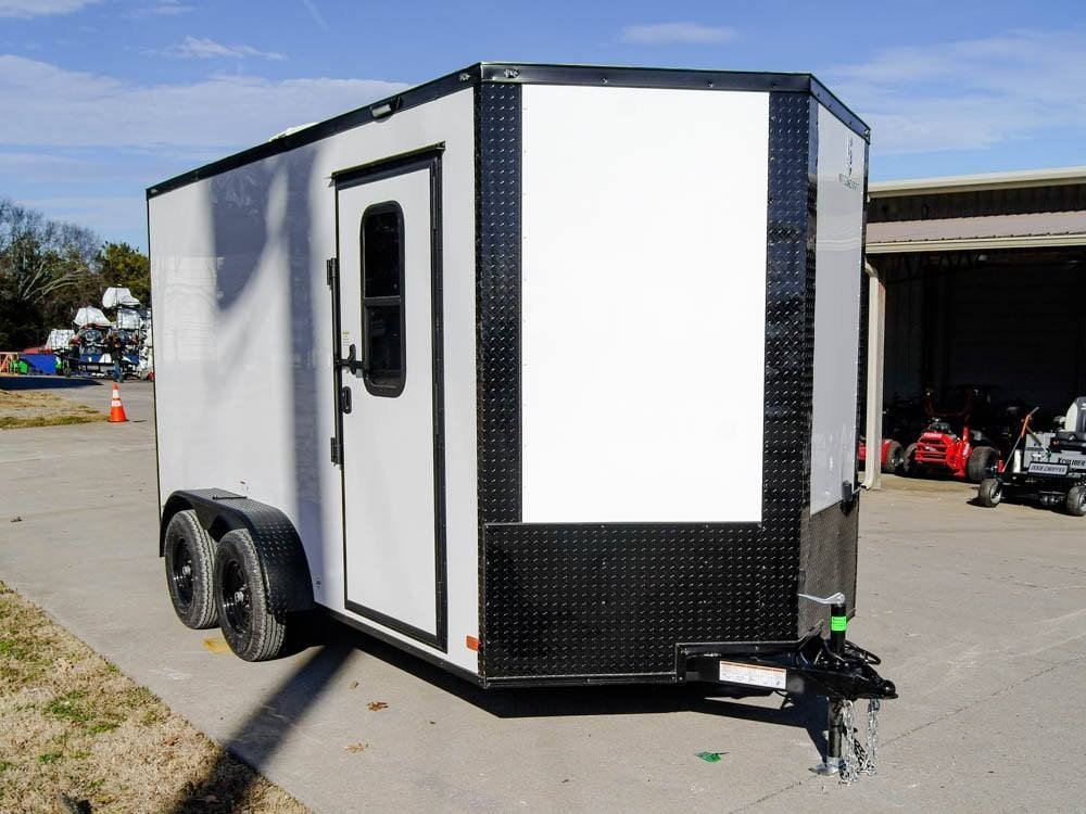 Be the first to review “7×14 White V-Nose Enclosed Trailer (2) 3,500lb Axles Windows Elect & Blkout Pkg” Cancel reply