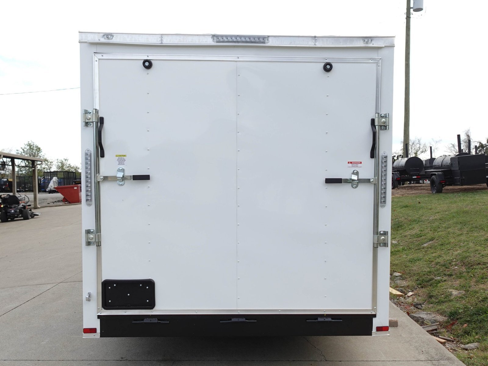 • 36″ Man Door with RV Flush Lock and Bar Lock: Convenient side entry with secure locking mechanisms for peace of mind and accessibility.