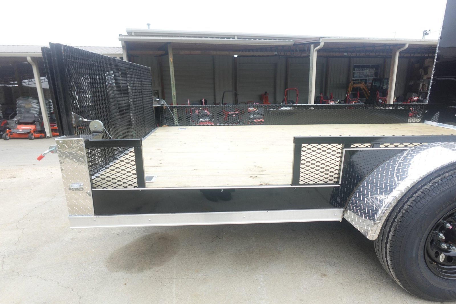 - 24″ Railing Break on Passenger Side Utility – Provides a secure barrier, offering extra safety during loading and transportation of equipment.