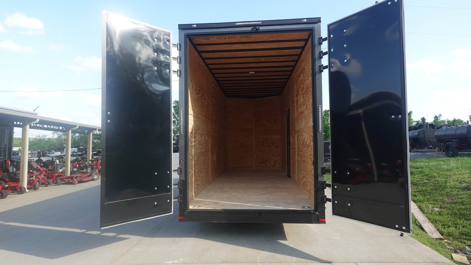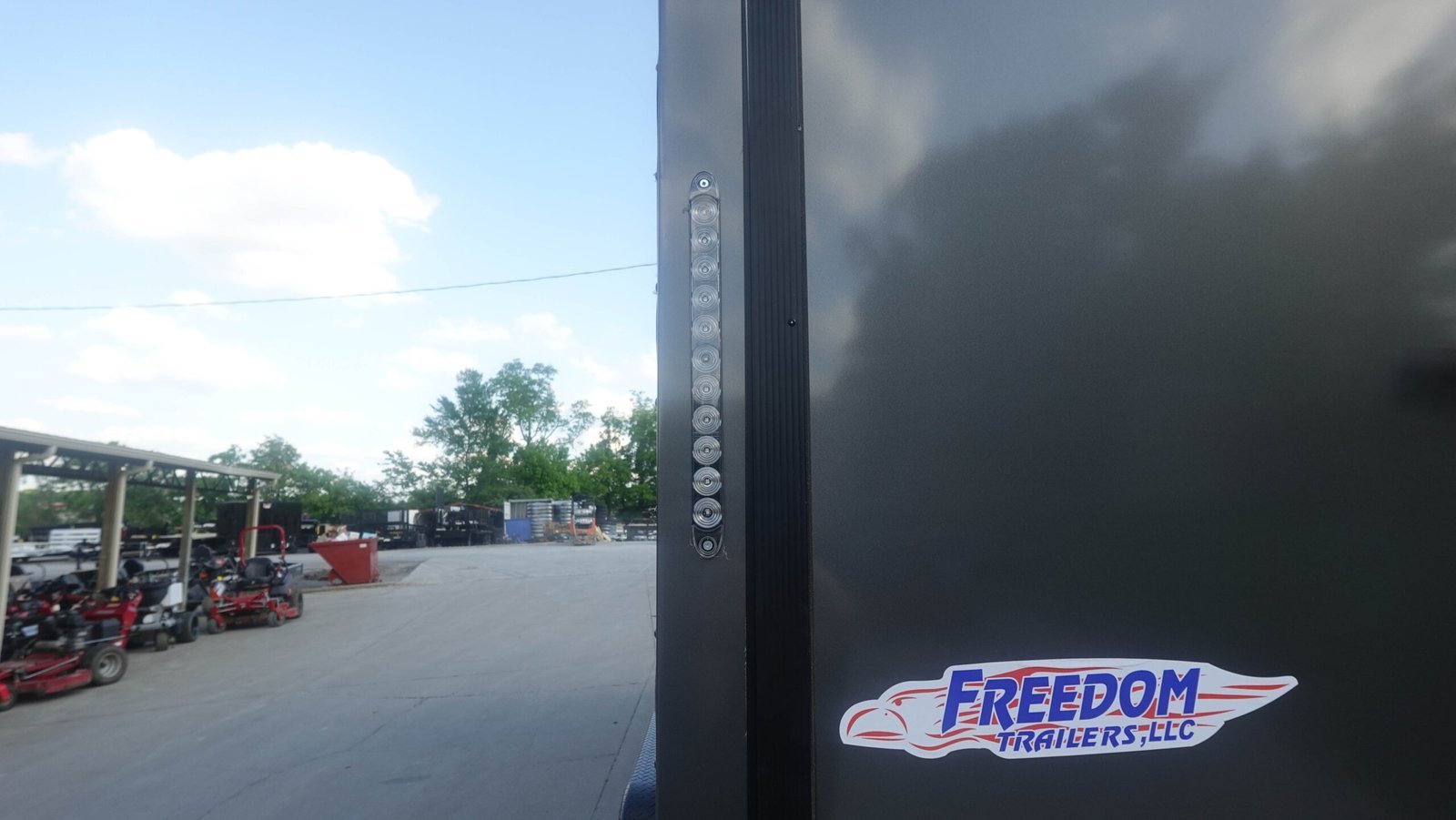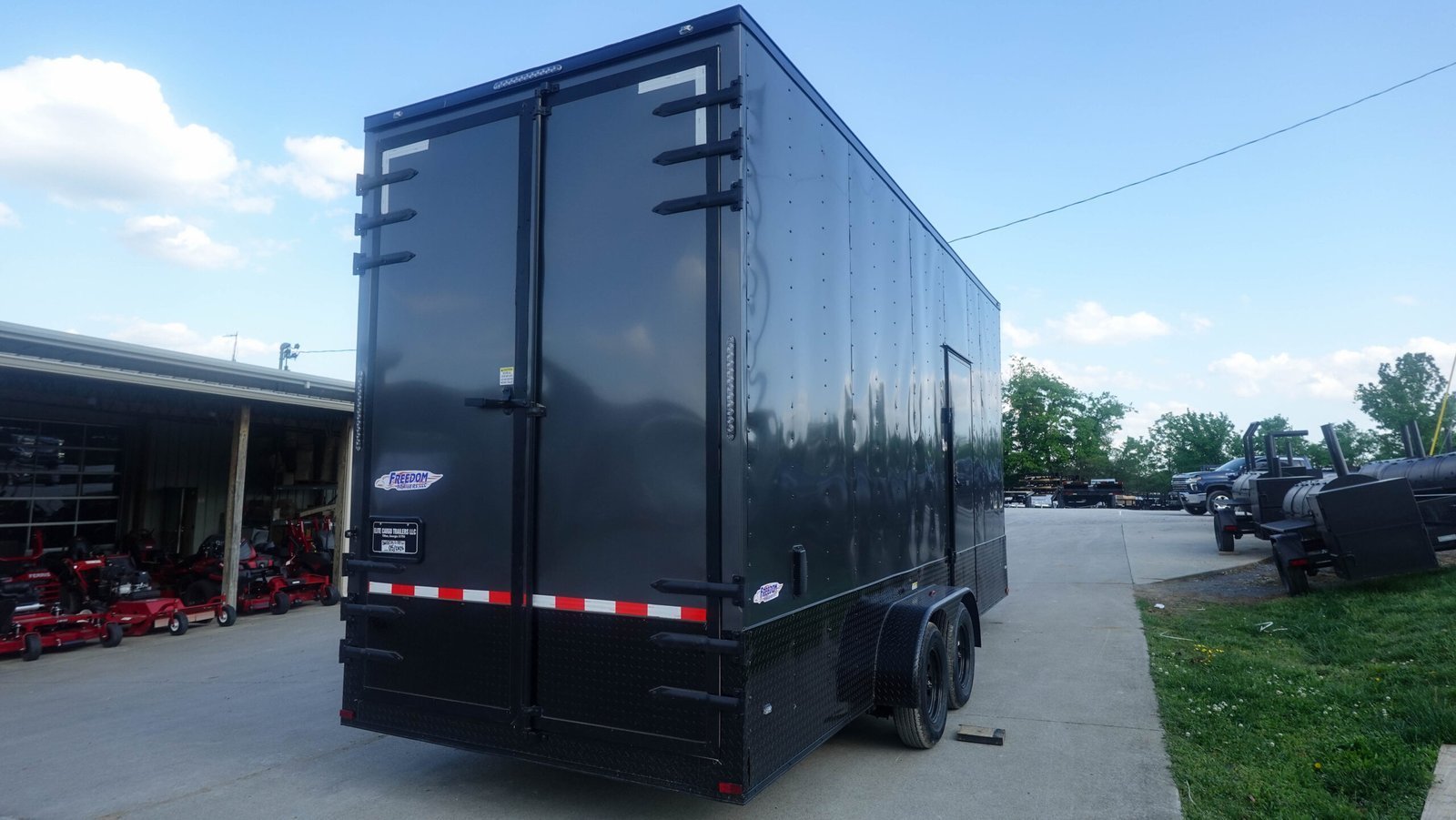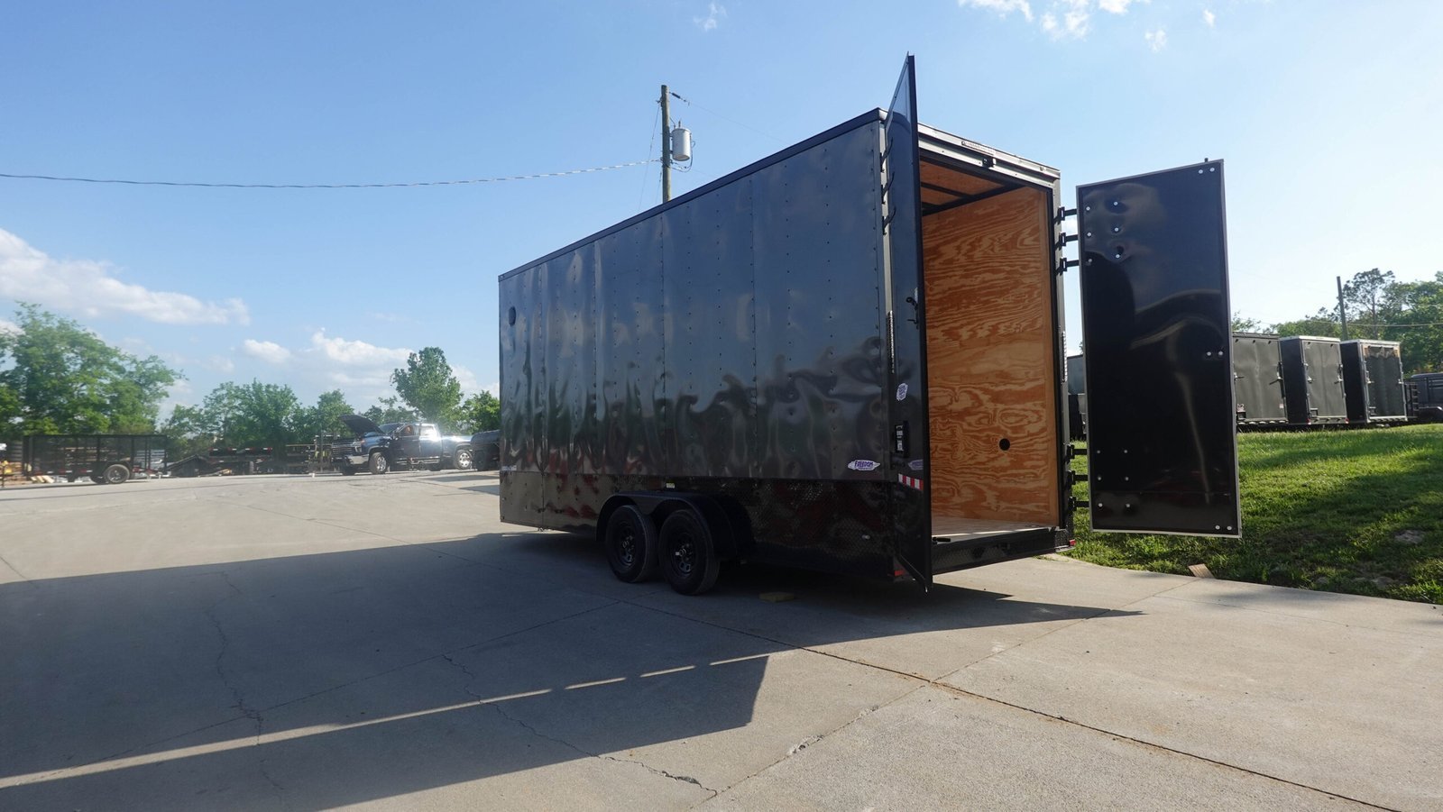 7×20 V Nose Charcoal With Black Out Trim Enclosed Trailer (2) 3500 LB Axles 9 Ft Interior height Barn Doors