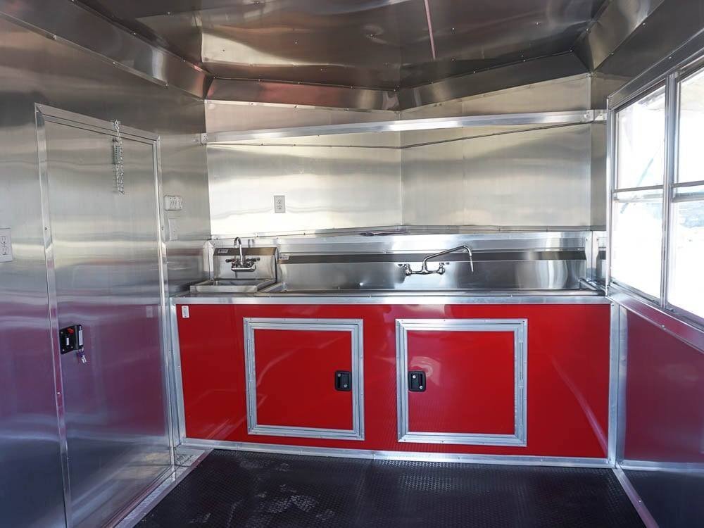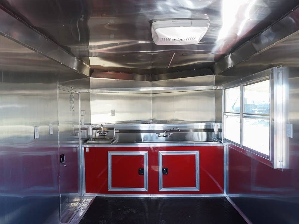 8.5 x 22 Red V-Nose BBQ Porch Concession Trailer