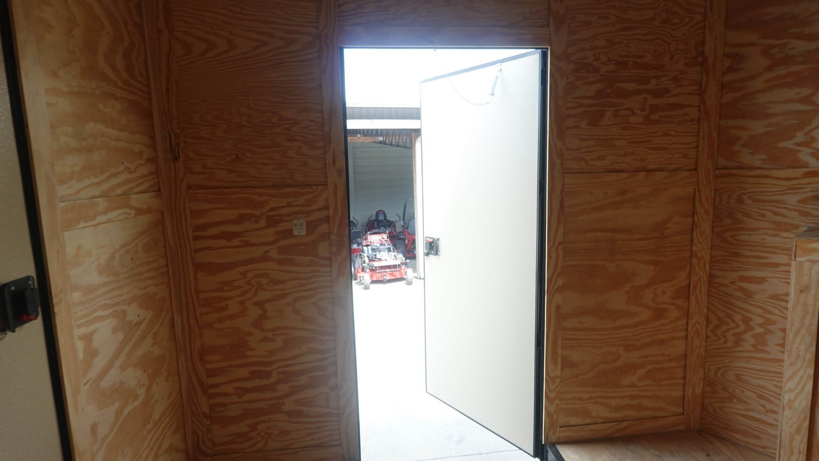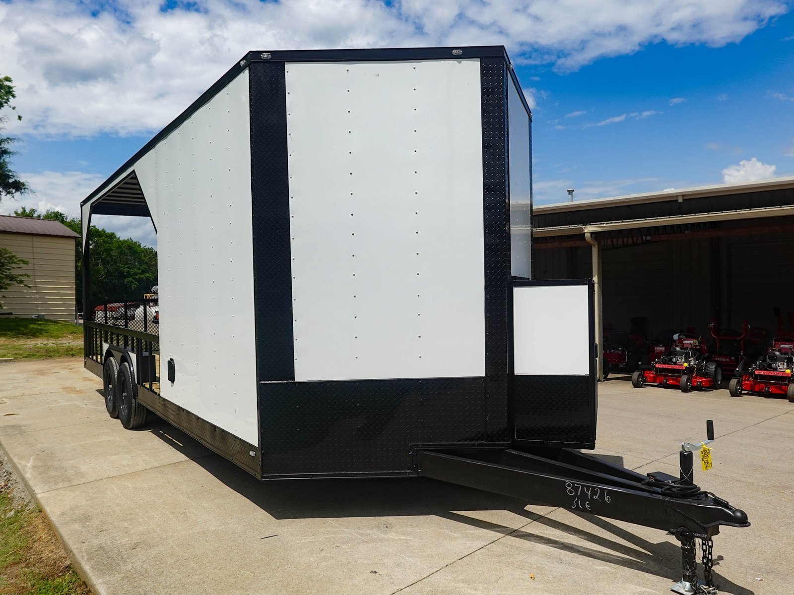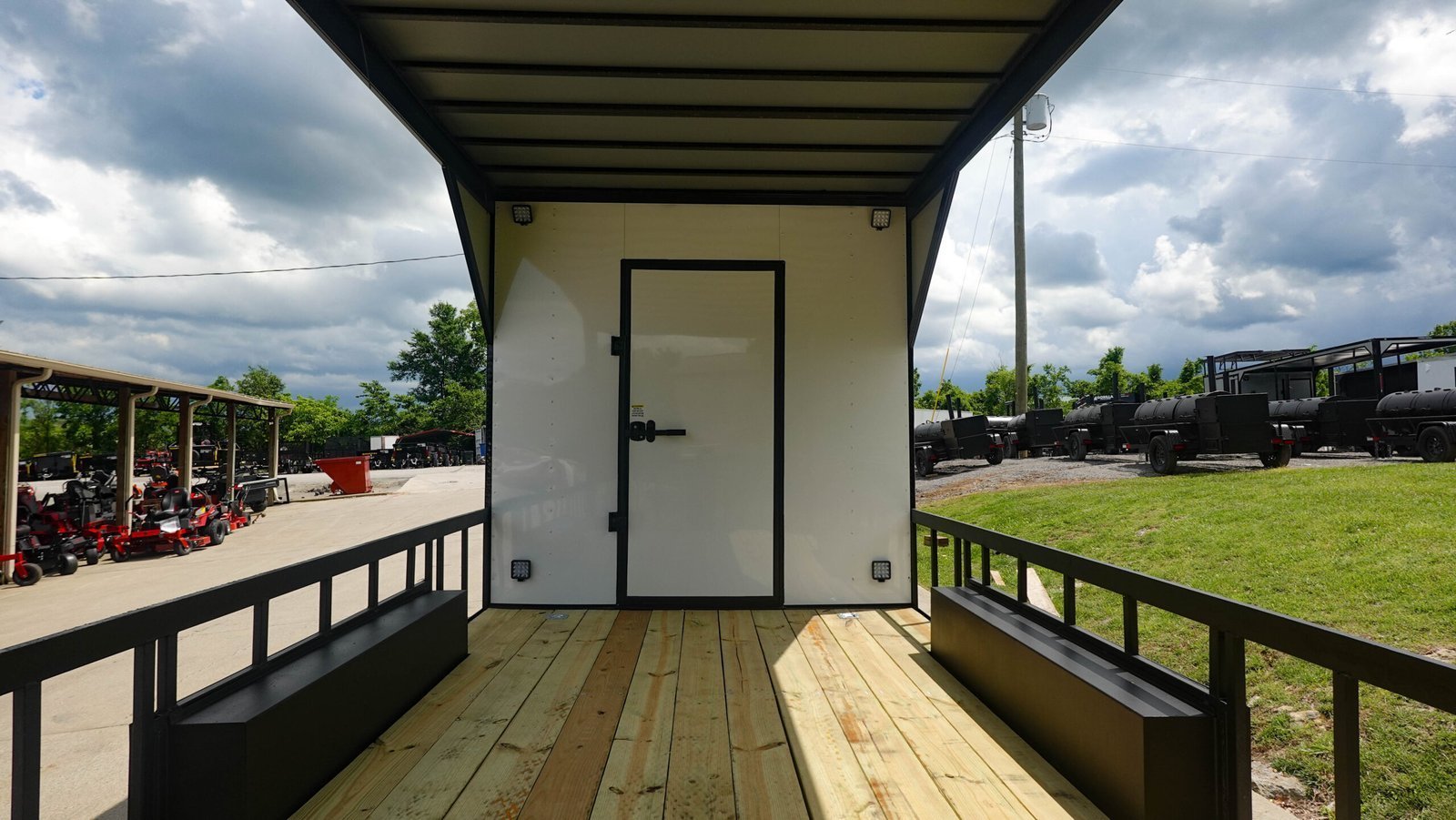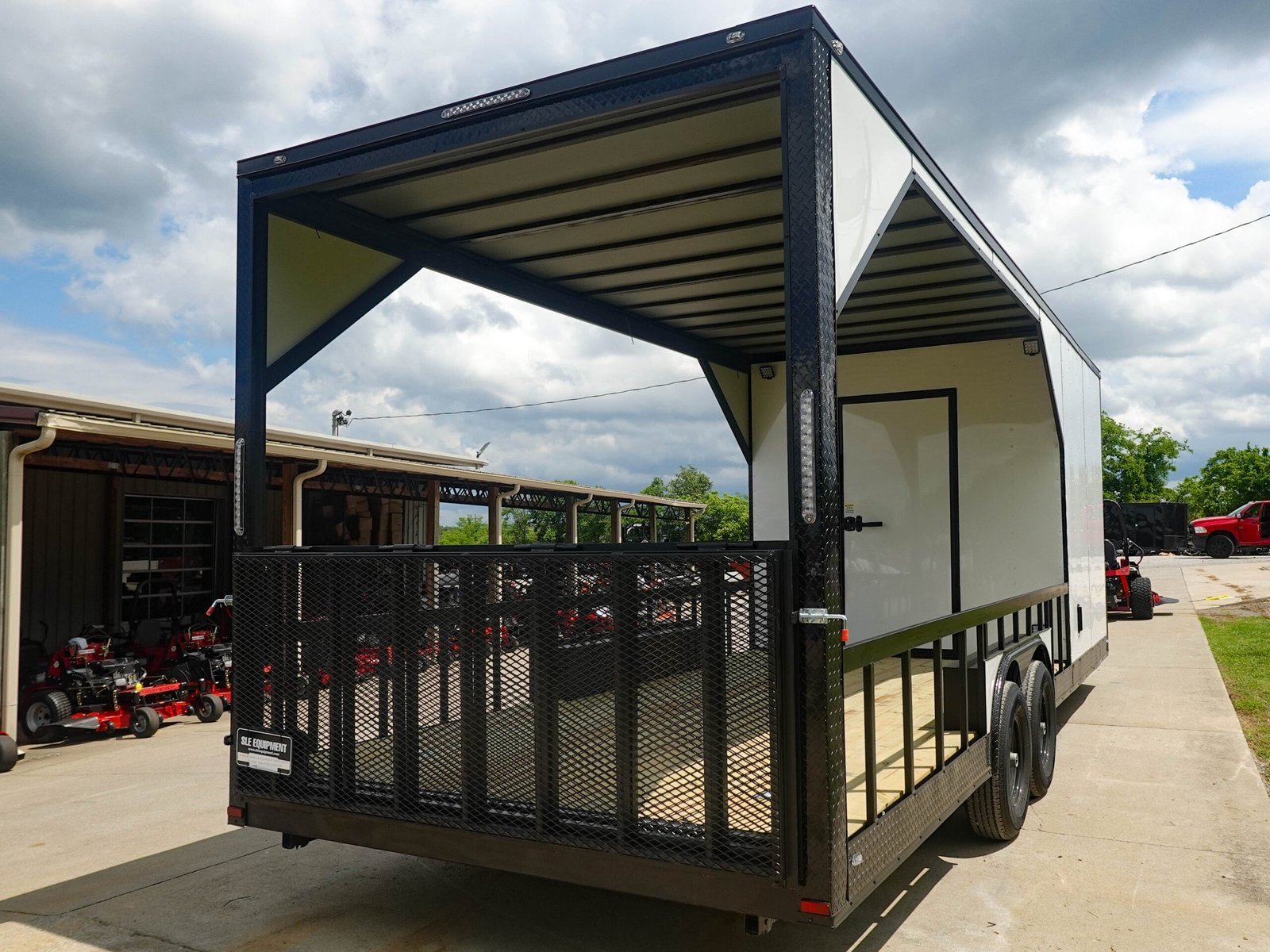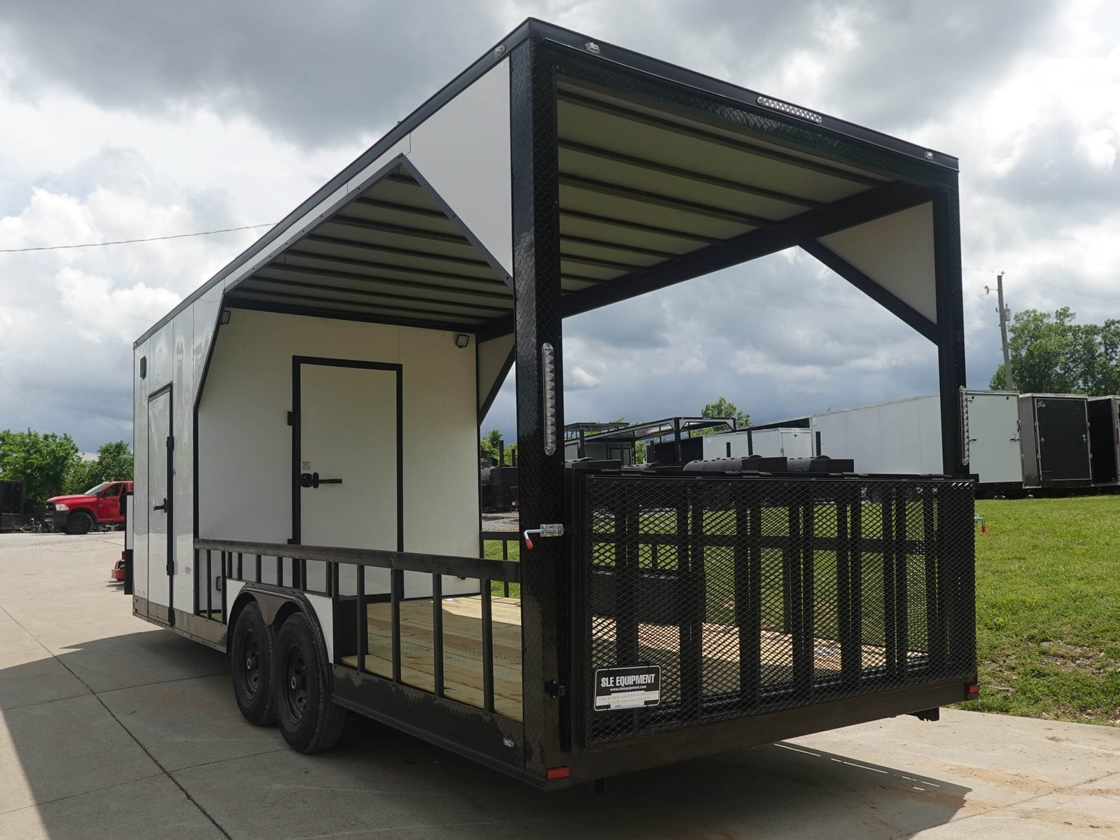 - Rear Entry Door: 36″ wide rear man door located on the enclosed section for direct access to the interior.