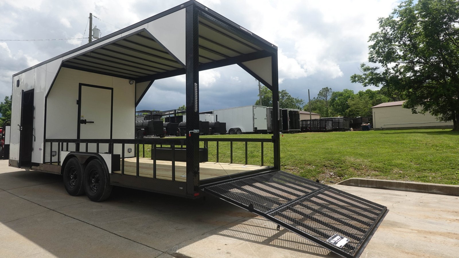 - Enclosed Front Section: 8 ft long with 8 ft interior height, perfect for equipment storage, on-site workstation, or climate-controlled environment.