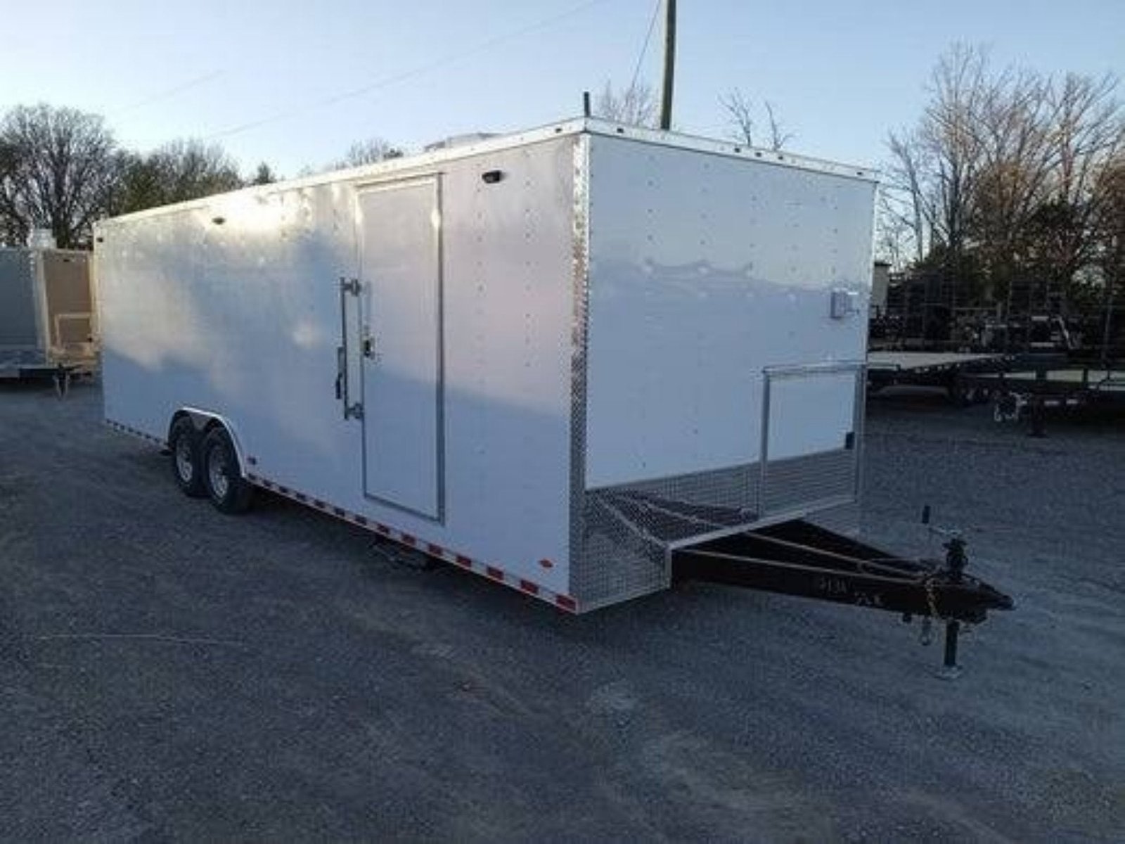 8.5′ x 28′ White Flat Nose Custom Enclosed Trailer