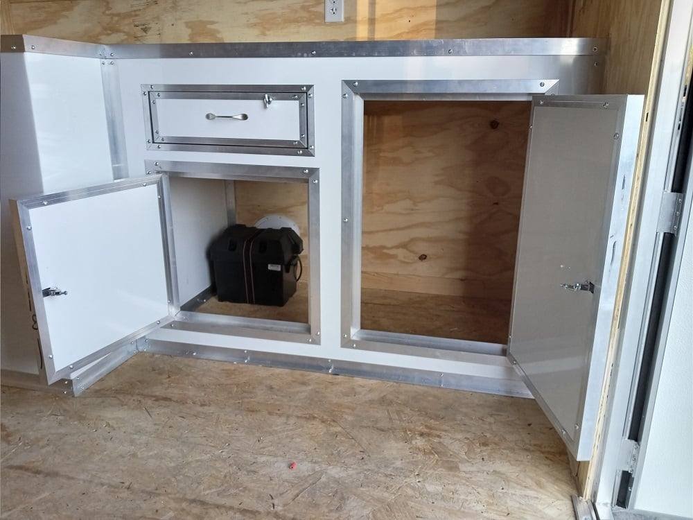 - Ample Overhead Cabinets: Maximize your storage capacity with overhead cabinets, designed to keep tools, supplies, and equipment neatly organized and within easy reach, enhancing the trailer’s functionality.
