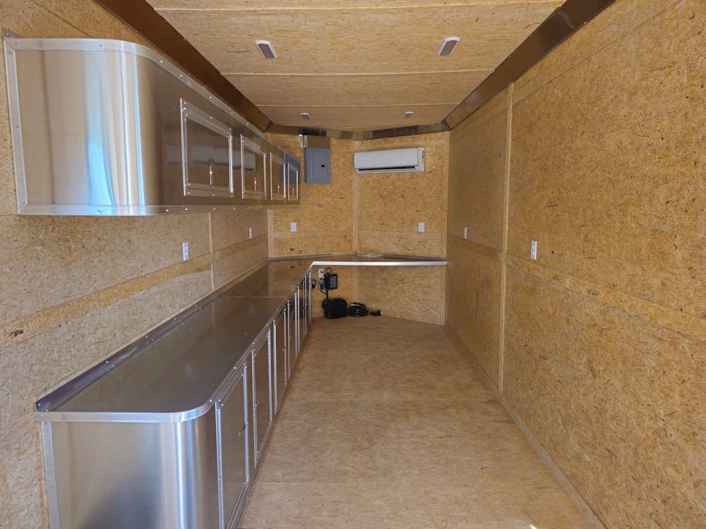 - 15′ Base Cabinets with Stainless Steel Countertops – Provides ample storage for tools, supplies, or catering needs.