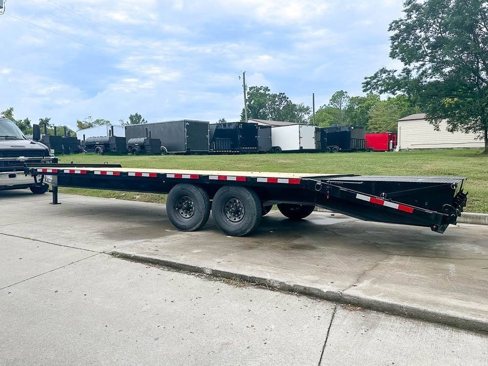 8.5×25 IBeam Deckover Dovetail Trailer (2) 7K Axles King Kong Ramps