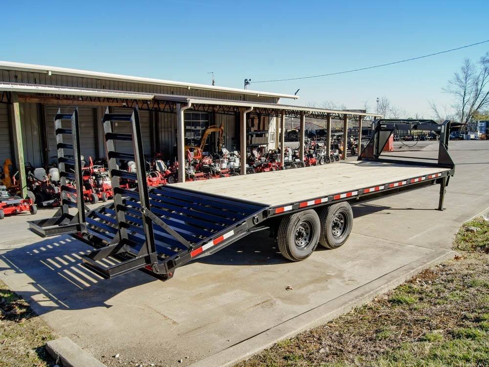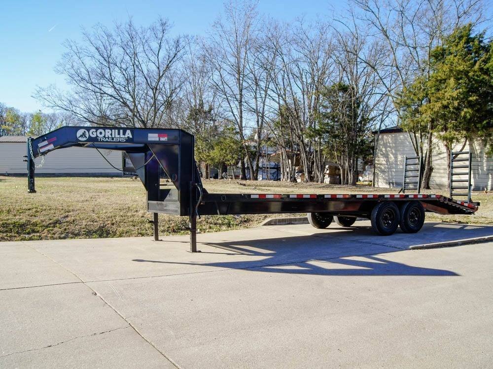 8.5×25 IBeam Gooseneck Deckover Trailer (2) 7K Axles Stand-Up Ramps