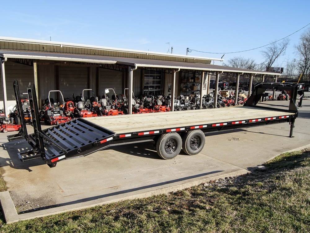 8.5×30 IBeam Gooseneck Deckover Trailer (2) 7K Axles Stand-Up Ramps