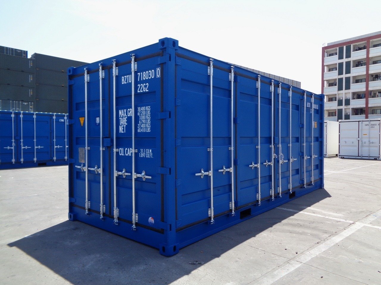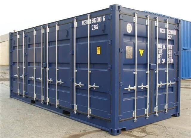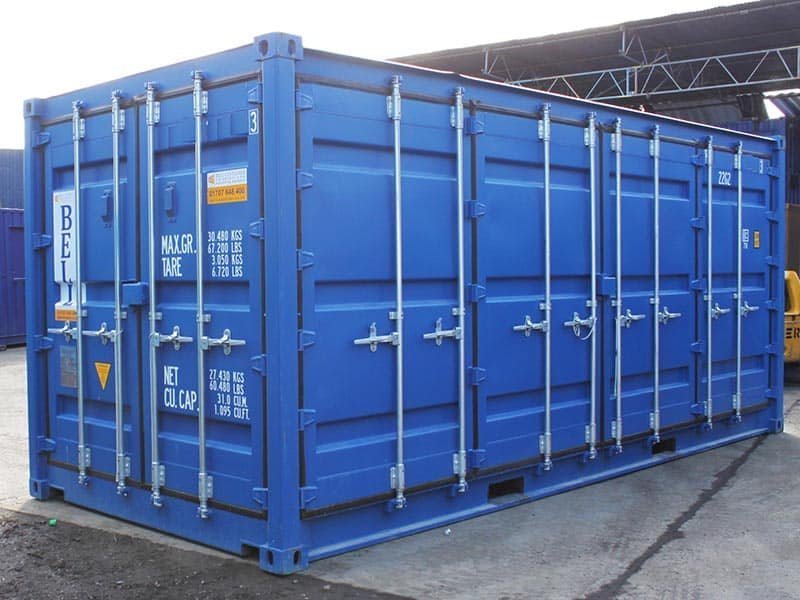 Our 20ft open side shipping containers have a pair of double hinged doors along one side of the container giving full side access – as well as a pair of double doors at the end.