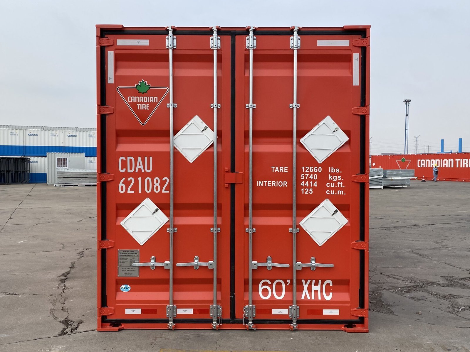 The containers are built by Singamas Container and Dong Fang Container International and are shipped empty to Canada. They are typically carried in the top position of a 53ft well car on top of another container.